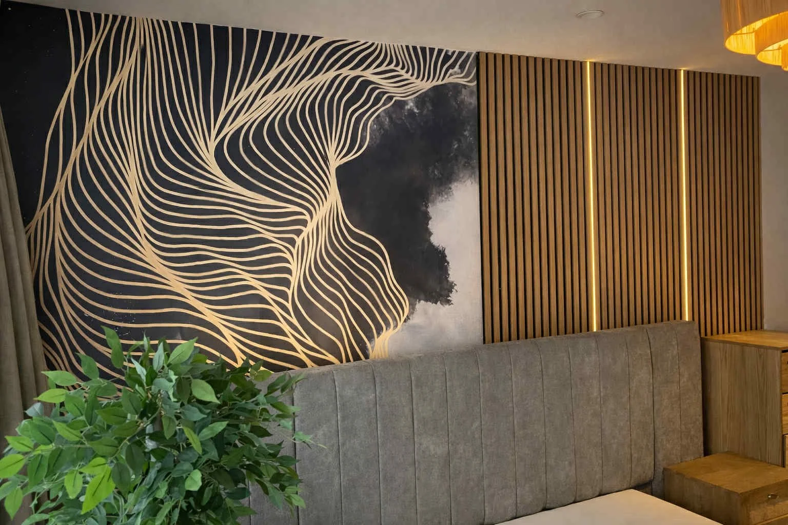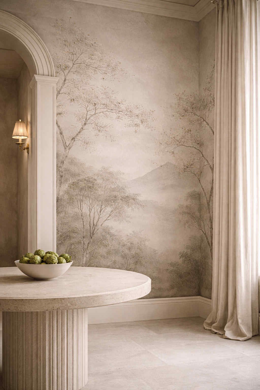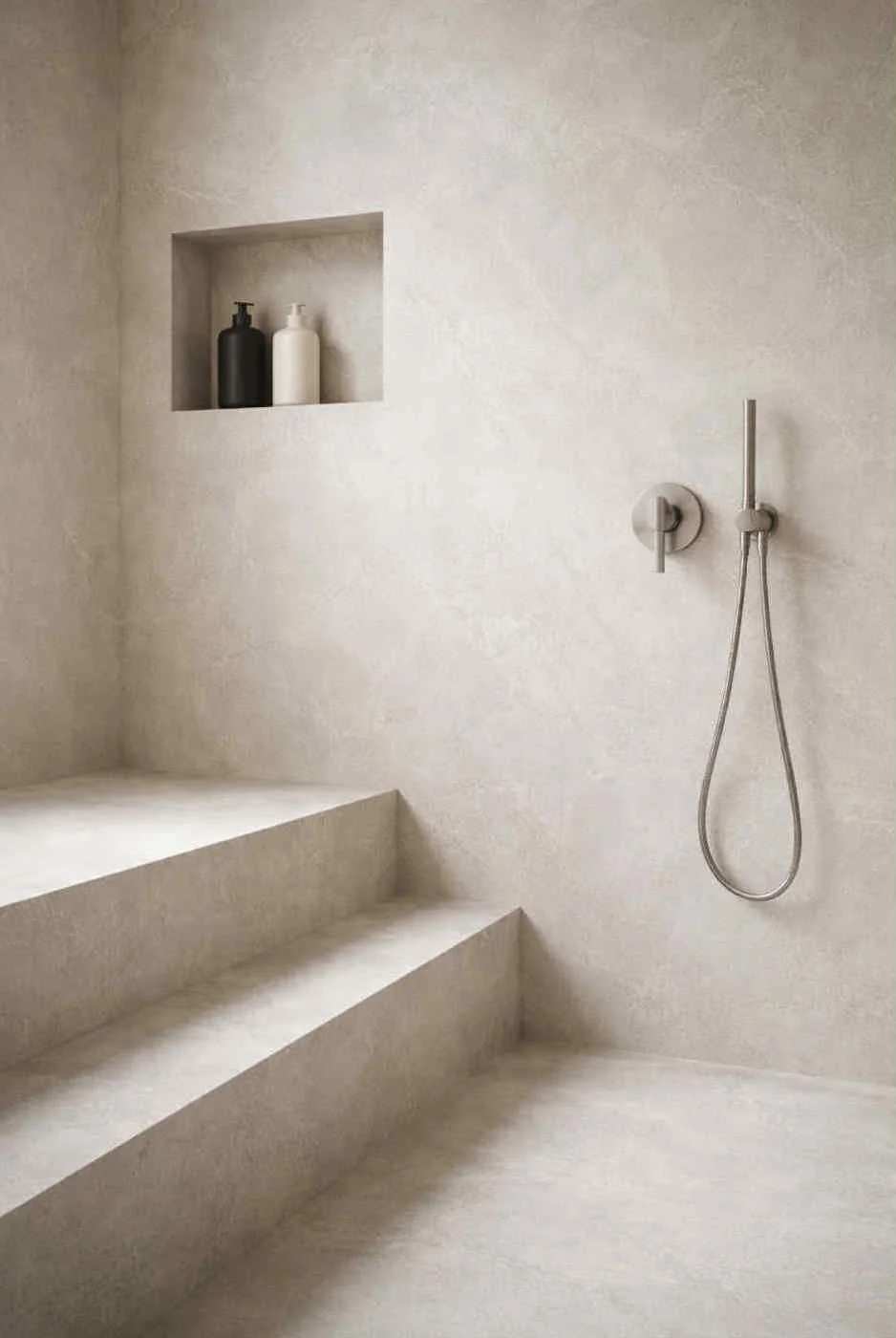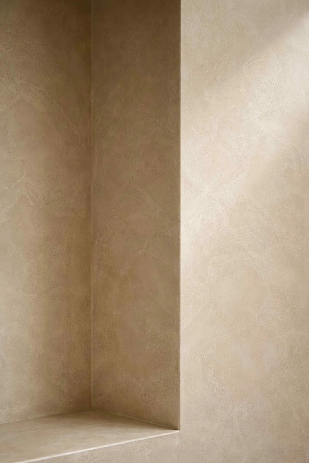 Services Venetian / Polished Plaster Microcement & Contemporary Finishes Murals & Painted Finishes Faux Bois / Marble Resin & Metal Finishes FF&E Original Artworks Project Portfolio Grey Grassello Di Calce Venetian Plaster Microcement Shower Feature Wall Abstract Line Mural With Timber Slats Minimal Dining Area (Private Residence) Project Enquiries